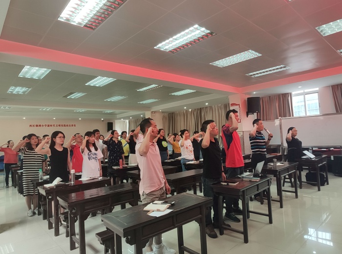 黃校長還帶領(lǐng)全校老師重溫教師誓詞,不忘初心、牢記使命。重溫誓詞之后,楊志堅副校長分享了自己初入教師崗位時候的感受,同時與老師們共勉,做師德高尚,認真工作,學生喜歡的教師;李虹瑩老師回想在大學時宣誓,自己的初心是做一名能幫助更多學生的心理老師;林家茵老師分享自己在煙小工作一直遵循的原則——讓孩子們快樂成長。全體教師進行了師德承諾書簽名,承諾認真遵守相關(guān)規(guī)定,做好師德師風建設(shè)。