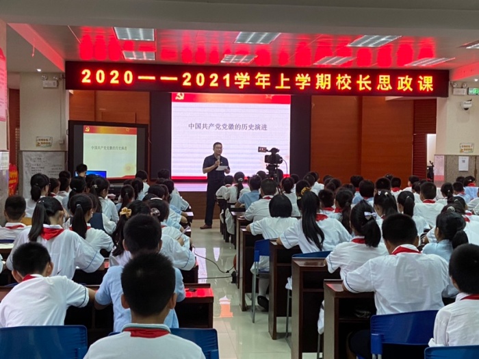 為深入落實(shí)習(xí)近平總書記在學(xué)校思政課教師座談會(huì)重要講話精神,加強(qiáng)新時(shí)代思政課建設(shè)。9月28日,中山市西區(qū)煙洲小學(xué)校長黃文華為學(xué)生上了一堂別有生趣的思政課——《中國共產(chǎn)黨黨徽的歷史演進(jìn)》。