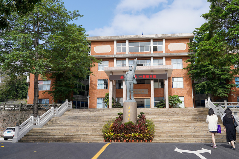 ▲楊仙逸中學(xué)校內(nèi)的楊仙逸雕像。