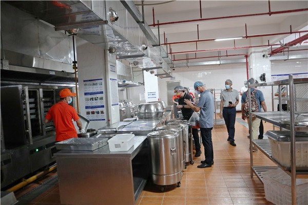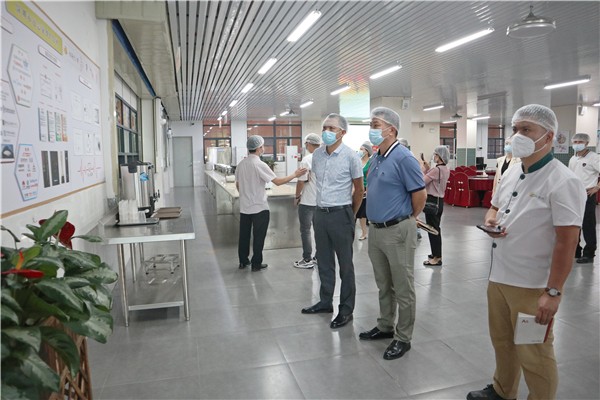 為讓學(xué)習(xí)團(tuán)一行初步了解學(xué)校的辦學(xué)歷史和直觀感受校園環(huán)境,在辦公室主任張建國的帶領(lǐng)下,他們先沿著將軍銅像、程度純館、殲5戰(zhàn)機(jī)停機(jī)坪、西林山航空文化園、學(xué)生宿舍、運動操場的路徑邊走邊聽講解。隨后的參觀食堂環(huán)節(jié),總務(wù)處主任鐘承炎負(fù)責(zé)講解。從學(xué)生食堂、教工餐廳到加工后廚,這里寬敞明亮的就餐環(huán)境、豐富營養(yǎng)的菜品樣式、暖心周到的服務(wù)、完善齊全的設(shè)施設(shè)備、科學(xué)精細(xì)的管理模式……讓學(xué)習(xí)團(tuán)一行留下深刻印象,并紛紛點贊。