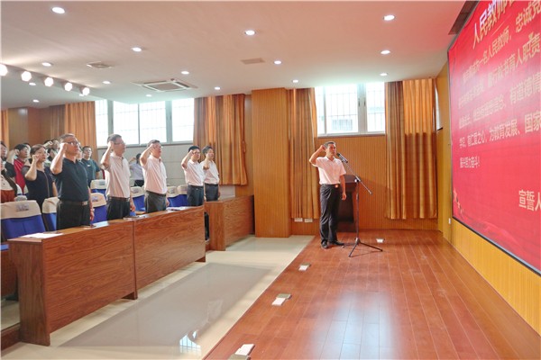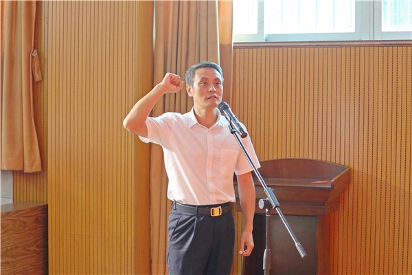 宣誓明志赤子情,春風(fēng)化雨育桃李。在劉朝暉校長(zhǎng)的帶領(lǐng)下,全體教師起立,右手握拳,宣讀誓詞。一份承諾,就是一份責(zé)任;一份誓言,就是一份使命。重溫人民教師誓詞,時(shí)刻提醒自己不忘初心,躬耕三尺講臺(tái)上繼續(xù)發(fā)光發(fā)熱。