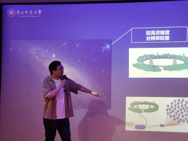 下午的學(xué)習(xí)教師們走進(jìn)了貴州師范大學(xué)重點(diǎn)研究領(lǐng)域——信息與計(jì)算科學(xué)重點(diǎn)實(shí)驗(yàn)室,貴州師范大學(xué)貴州省信息與計(jì)算科學(xué)重點(diǎn)實(shí)驗(yàn)室副教授,貴州省智能計(jì)算與控制技術(shù)工程實(shí)驗(yàn)室副主任陳彥。給我們講解了該校的科學(xué)研究成果,包括FAST、交通信息化、國(guó)家未來網(wǎng)絡(luò)建設(shè)、三維虛擬現(xiàn)實(shí)、生物大數(shù)據(jù)、網(wǎng)絡(luò)空間安全和遙感大數(shù)據(jù)七個(gè)方面。隨后我們跟隨科研人員來到貴師大天文科普實(shí)驗(yàn)基地,領(lǐng)略了嘆為觀止的科研成果,包括宇宙運(yùn)行、脈沖星運(yùn)作、FAST模擬運(yùn)作等。老師們一邊觀看一邊體驗(yàn),驚嘆聲與歡笑聲在實(shí)驗(yàn)室蕩漾。國(guó)之重器,科技興國(guó),在這場(chǎng)科技展覽中我們自豪于科技創(chuàng)新帶來的生活巨變,自豪于中國(guó)科技的自立自強(qiáng)。