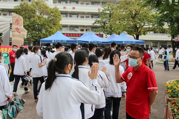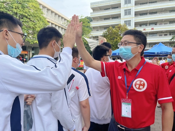 2022年6月7日,中山二中高三的學(xué)子,奔赴考場,迎來高考第一天!6月7日上午,中山市第二中學(xué)高考考點(diǎn)在各職能部門的全力配合下,井然有序地進(jìn)行中。早上7:30,考生們在高考自習(xí)室內(nèi)作臨考前的準(zhǔn)備工作,吳祥明校長、王曙東副校長、高三行政、班主任及語文老師們在校道為同學(xué)們擊掌加油,把最美好的祝愿送給自信邁向考場的高三學(xué)子們。