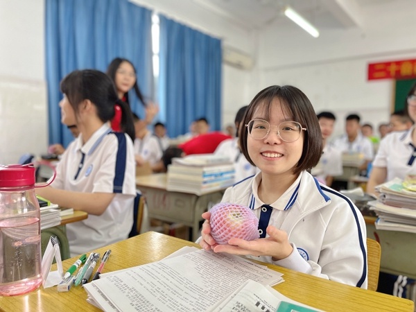 在炎炎的夏日之中,各班教室里歡聲笑語,拿到蘋果的學(xué)生們和老師們心情激動,臉上樂開了花,在校長們的鼓勵下自信滿滿。班主任和科任老師們精心準(zhǔn)備了“高考必勝”貼紙和紅手繩,儀式感滿滿!