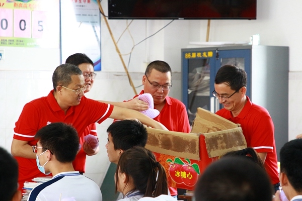 6月1日上午,由中山市第二中學(xué)黨委書記、校長吳祥明同志帶隊,王曙東副校長、梁紅妹副校長、侯志堅副校長等校領(lǐng)導(dǎo)分組走進高三各班教室,給高三考生們每人送上一個蘋果,他們希望二中高三學(xué)子自信滿滿,贏六月碩果,也希冀中山二中2022屆紅紅火火,碩果累累。