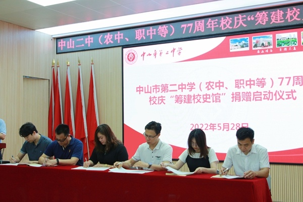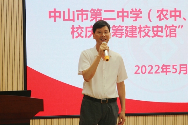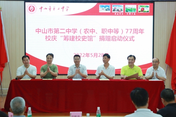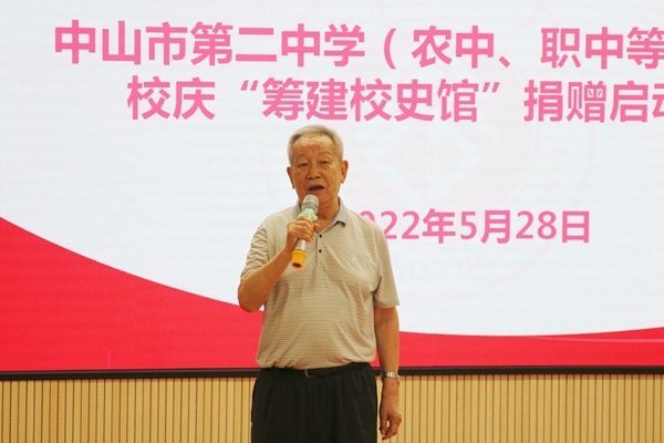 上午10時(shí),儀式正式開(kāi)始。李俊文主任向各位校友代表們講述:中山二中(農(nóng)中、職中等)自創(chuàng)辦以來(lái),已經(jīng)走過(guò)77個(gè)春秋。在歷任校長(zhǎng)的帶領(lǐng)下,艱難創(chuàng)業(yè),培育了眾多后輩英良?!拔覀?cè)谶@里隆重集會(huì),是因?yàn)槲覀儠r(shí)刻不敢忘卻:80年代農(nóng)中創(chuàng)辦之初,在黃校長(zhǎng)的帶領(lǐng)下,為了減輕學(xué)校負(fù)擔(dān),全校師生經(jīng)常搬運(yùn)建筑泥土砂石等,開(kāi)辟出今天的運(yùn)動(dòng)場(chǎng)。今天的二中人時(shí)刻不敢忘卻先輩們的創(chuàng)業(yè)精神和自己心中的教育理想?!睘榧o(jì)念這一段艱難但充滿快樂(lè)的校史,“校慶籌備聯(lián)誼會(huì)”向海內(nèi)外校友發(fā)出倡議,在中山二中(農(nóng)中、職中等)77周年校慶之際,啟動(dòng)“籌建校史館”捐贈(zèng)儀式。
