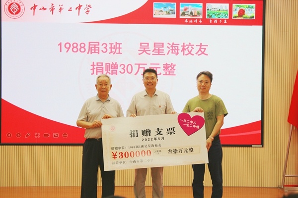 當(dāng)前學(xué)校處于發(fā)展的快速上升期,需要越來(lái)越多的人關(guān)心、支持和厚愛(ài),共同呵護(hù)中山二中教育這棵參天大樹(shù)枝繁葉茂,碩果累累,讓二中精神薪火相傳,歷久彌新。全體二中人也必將更加努力工作,以更好的成績(jī)回報(bào)校友和社會(huì)各界的關(guān)懷和期望。