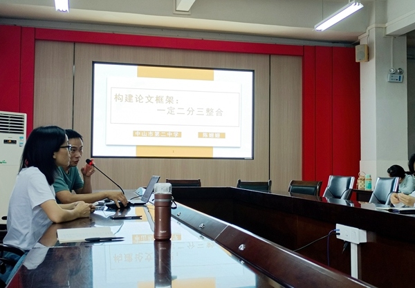 2022年5月19日下午,中山市第二中學(xué)寫作組開展第三次學(xué)習(xí)活動,由陳姍姍老師在校圖書館二樓會議室進行主題為《構(gòu)建論文框架:一定二分三整合》的講座。陳姍姍老師從自己論文寫作經(jīng)歷講起,強調(diào)不僅要閱讀專業(yè)書籍,更要把論文寫在課堂上,論文素材從教學(xué)實踐和反思中來,論文寫作學(xué)習(xí)從學(xué)會制定框架開始。這個專題指導(dǎo)為寫作組老師們指明了正確的論文寫作方向。