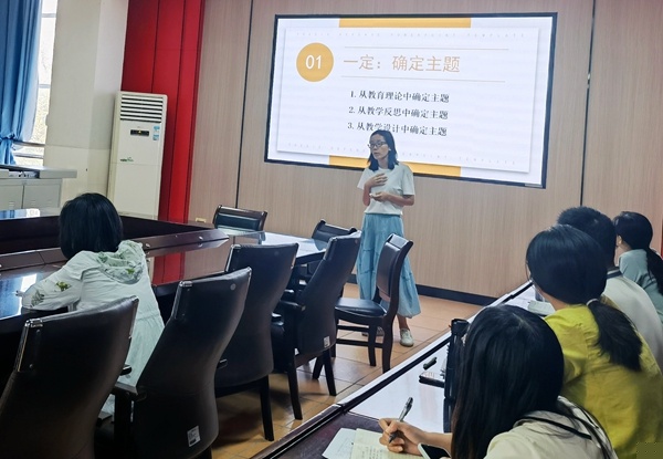 陳姍姍老師講到,要上好課,堅持寫教學(xué)反思,充分利用教學(xué)反思。教學(xué)在論文寫作中占據(jù)80%的重要性,因此,老師們要重視教學(xué)反思的寫作,通過教學(xué)反思寫透一個問題,從教學(xué)反思中提煉出論文。結(jié)合自己多篇已發(fā)表的教學(xué)論文,陳姍姍老師詳細講授了如何通過“一分二定三整合”制定論文框架,包括:確定論文主題,切分觀點的原則和策略,整合主題、觀點和素材的方法。