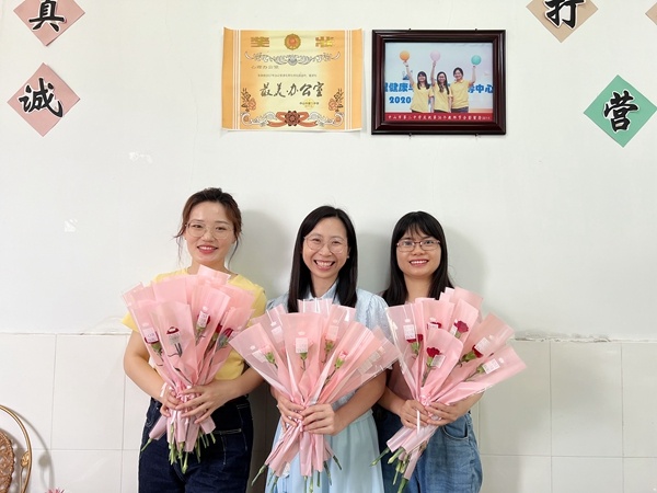 作為活動(dòng)的組織策劃者,心理老師們也化身“花藝人”,親手給每一個(gè)后勤工作人員準(zhǔn)備美美的花。