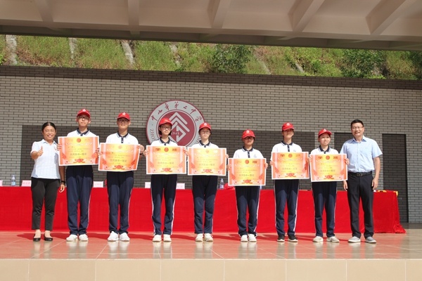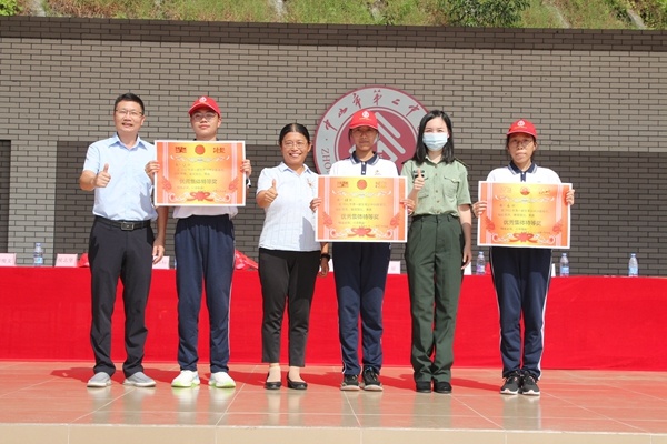 高一5班的學(xué)生代表呂珉熹同學(xué)發(fā)言。從意志品質(zhì)、團(tuán)隊(duì)精神、感恩懷德和使命擔(dān)當(dāng)四個(gè)方面講述了軍訓(xùn)的收獲,表達(dá)了自己的態(tài)度與志向。在這短短幾天,二中學(xué)子實(shí)現(xiàn)了意志品質(zhì)的跨越與蛻變,涌現(xiàn)出一大批刻苦訓(xùn)練、紀(jì)律嚴(yán)明、內(nèi)務(wù)嚴(yán)整、精神飽滿的先進(jìn)個(gè)人和優(yōu)秀集體。在頒獎(jiǎng)儀式上,羅玉瓊副主任宣讀表彰決定,領(lǐng)導(dǎo)嘉賓們?yōu)楂@獎(jiǎng)同學(xué)頒獎(jiǎng)。