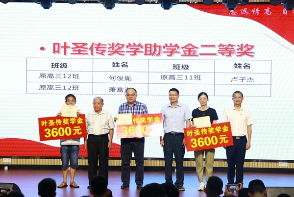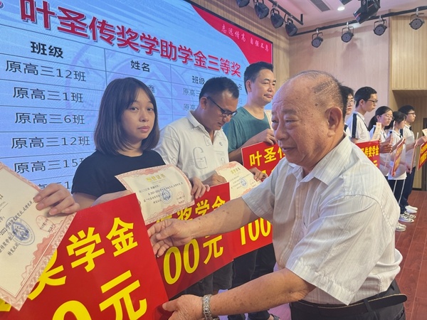 本次頒獎合計發(fā)放各類獎學(xué)金10.4萬元,將有149名師生獲得200-3600元不等的獎學(xué)獎教金。在歷年捐資獎教獎學(xué)助學(xué)金共計99萬元的基礎(chǔ)上,2022年,葉氏家族葉家仁先生捐資設(shè)立第五期“葉圣傳獎教獎學(xué)助學(xué)金”,每年捐資人民幣5萬元,為期三年,總計15萬元。葉圣傳先生,中山市第二中學(xué)前身(中山縣九區(qū)中學(xué))首任校長葉國堯先生的父親。黃圃鎮(zhèn)名醫(yī),一貫熱心公益、懸壺濟世、傾情教育,為世人稱道。為弘揚葉圣傳醫(yī)師的優(yōu)良品德,葉圣傳先生后輩葉家仁先生設(shè)立以葉圣傳先生冠名的“葉圣傳獎教獎學(xué)助學(xué)金”。“葉圣傳獎教獎學(xué)助學(xué)金”發(fā)起人、中山市黃圃鎮(zhèn)歸國華僑聯(lián)合會副主席張金城先生為學(xué)子頒獎。為支持中山二中教育事業(yè)的發(fā)展,感恩母校的培養(yǎng)之情。1998屆高三1班校友王靖遠律師等擬于2022年起捐資設(shè)立“廣東靖許匯律師事務(wù)所獎學(xué)金”。每學(xué)年開學(xué)前發(fā)放2萬元獎學(xué)金。首期五年,合計10萬元,以后還將繼續(xù)。每年獎勵40名品學(xué)兼優(yōu)的學(xué)生,每人獎金500元。1998屆高三1班校友王靖遠律師為學(xué)子頒獎。