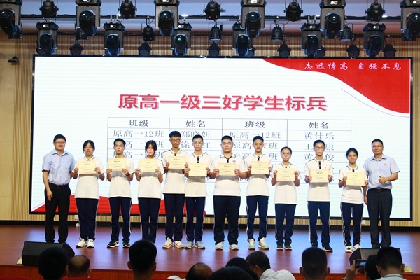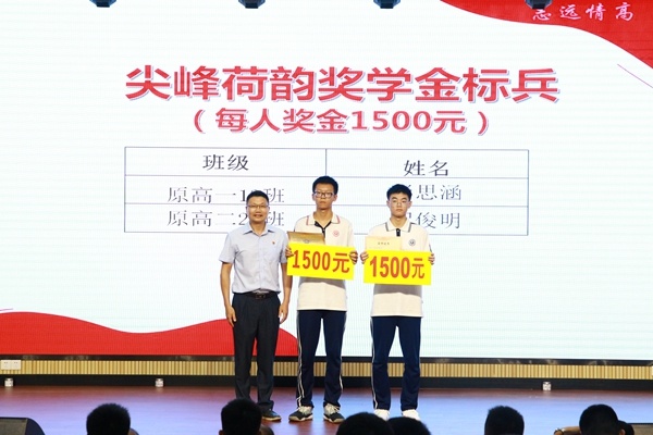 王曙東副校長宣讀中山市第二中學(xué)表彰決定,對獲得“葉圣傳獎學(xué)助學(xué)金”二、三等獎,“廣東靖許匯律師事務(wù)所獎學(xué)助學(xué)金”,尖峰荷韻獎學(xué)金特等獎、一等獎、二等獎、三等獎、體藝獎獎學(xué)金的學(xué)生,以及獲得“文明班級”“三好學(xué)生標兵””星級學(xué)習(xí)型家長”榮譽稱號的集體和個人進行表彰頒獎,號召全校同學(xué)向身邊的榜樣學(xué)習(xí),奮發(fā)圖強,爭取優(yōu)異成績。獲獎同學(xué)依批次上臺領(lǐng)獎。