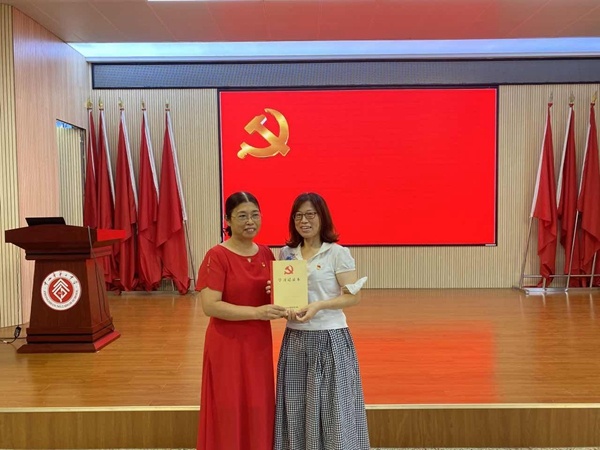 會議最后,支部書記汪保源選讀支部大會決議,同意歐陽珊同志轉(zhuǎn)為預備黨員。學校黨委副書記梁紅妹為歐陽珊同志佩戴黨徽,并發(fā)放黨員學習筆記本,鼓勵她以后認真學習,以一名優(yōu)秀共產(chǎn)黨員的先進性來要求自己。