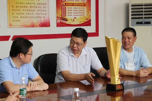 2022年9月20日上午,作為優(yōu)秀項(xiàng)目經(jīng)理,帶領(lǐng)團(tuán)隊(duì)參與建設(shè)高速公路工程榮獲“詹天佑獎(jiǎng)”“李春獎(jiǎng)”“國家優(yōu)質(zhì)工程金獎(jiǎng)”等建筑大獎(jiǎng)的1991屆優(yōu)秀校友周浩恩同志,回訪母校中山二中,向母校捐贈(zèng)“國家優(yōu)質(zhì)工程金獎(jiǎng)”獎(jiǎng)杯。學(xué)校副校長侯志堅(jiān)、工會(huì)主席劉朝暉、校友聯(lián)系負(fù)責(zé)人李俊文主任、馮定和老師與周浩恩校友開展座談會(huì)。