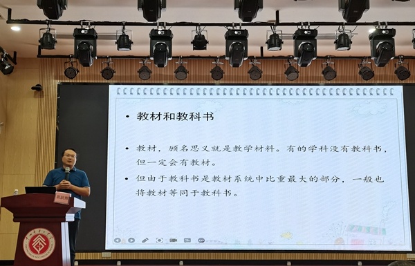 講座伊始,郭老師以自己參與的一次教材分析類論文評選經(jīng)歷引出了目前老師們寫作中存在對“論文類型”模糊、不清楚教材分析的基本路徑與原理的現(xiàn)象。針對老師們寫作中遇到的困境,郭老師從教材分析的價值、教材分析的角度、教材分析論文的常見框架及教材分析類論文撰寫指南四個方面細致講解了教材分析類寫作的方法。郭老師提出,教材分析就是分析教材內(nèi)容,教材分析的目的是明確教學內(nèi)容和流程。用形象的語言來說教材分析如同泡茶,將高度濃縮的干茶泡開,泡出茶葉的元素與香氣,如同把握教材的知識和載體,進而明確“喝什么”和“怎么喝”。而對于教材分析的角度,郭老師認為可以就教材文本、教材助學系統(tǒng)、教材結(jié)構(gòu)、教材理念四個角度進行,并提出了“課程與教學基本原理類”“教材版本對比類”“教材特點及問題分析類”三類論文的參考框架。