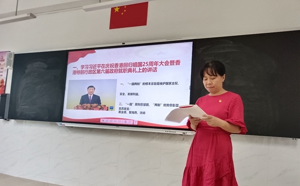 首先由部組織委員馬興蘭同志帶領(lǐng)全體黨員一起學習了《習近平在慶祝香港回歸祖國25周年大會暨香港特別行政區(qū)第六屆政府就職典禮上的講話》,主要內(nèi)容有:“一國兩制”的根本宗旨是維護國家主權(quán)、安全、發(fā)展利益;“一國”原則愈堅固,“兩制”優(yōu)勢愈彰顯。黃全順、黎海燕、許婷等同志作為黨員代表紛紛表態(tài):“一國兩制”是創(chuàng)舉,是具有強大的生命力,是確保香港長期繁榮穩(wěn)定、維護香港同胞福祉的好制度。