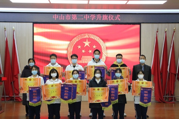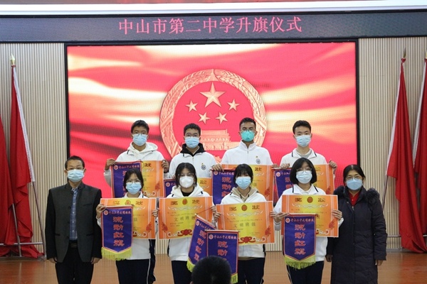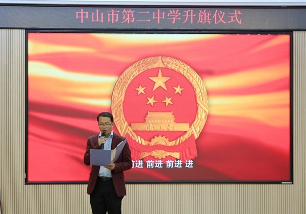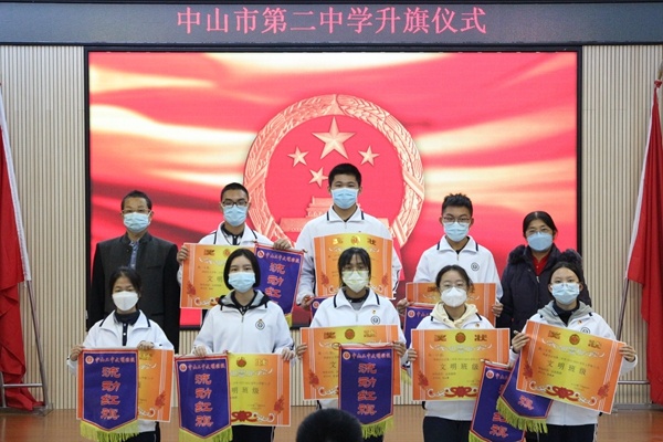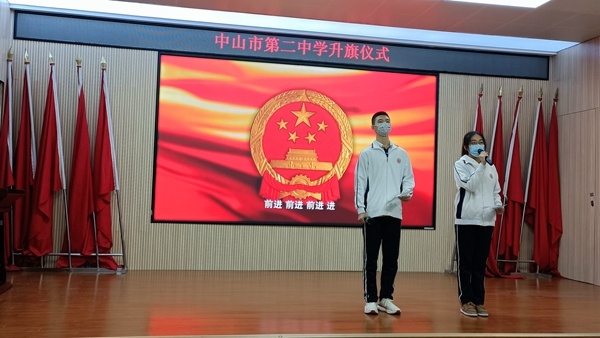 12月12日清晨,中山二中于階梯室開展本周升旗儀式,國旗班同學(xué)手持國旗,列隊(duì)進(jìn)場。鮮紅的國旗,伴隨著雄壯的國歌聲,升旗儀式莊嚴(yán)而神圣。高三12班兩位同學(xué)作《學(xué)習(xí)憲法,做守法公民》的國旗下演講。