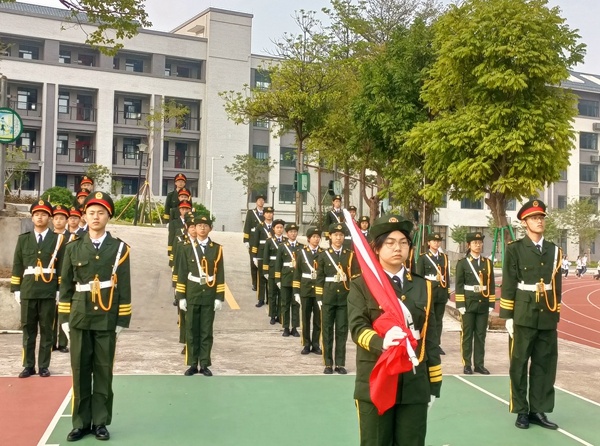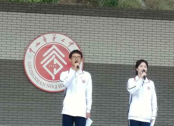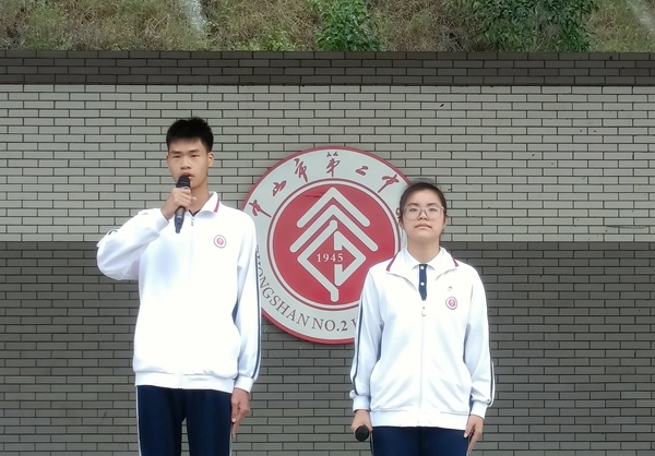 11月21日清晨,中山二中于體育場(chǎng)開展本周升旗儀式,國(guó)旗班同學(xué)手持國(guó)旗,列隊(duì)進(jìn)場(chǎng)。鮮紅的國(guó)旗,伴隨著雄壯的國(guó)歌聲,升旗儀式莊嚴(yán)而神圣。高三11班兩位同學(xué)作《強(qiáng)國(guó)有我 自信體測(cè)》的國(guó)旗下演講。