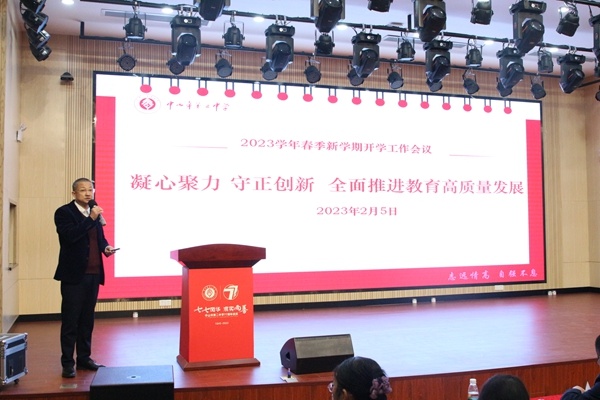 春風催桃李,揚帆啟新程。為了確保新學期各項工作有序、有效開展,2023年2月5日上午,中山市第二中學在報告廳召開2023年春季學期開學教職工大會,會議由辦公室主任王友福主持。