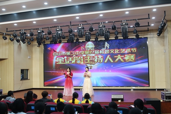 為積極參加中山市文明典范城市創(chuàng)建,進一步開展愛國主義教育, 踐行社會主義核心價值觀,弘揚中華優(yōu)秀傳統(tǒng)文化,營造積極向上的校園文化氛圍,德育處、團委特舉辦中山市第二中學(xué)第27屆校園文化藝術(shù)節(jié)。3月29日下午,校園文化藝術(shù)節(jié)開幕式暨“金話筒”主持人大賽在報告廳舉行。