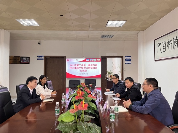 春雨潤物,春風有信!2023年3月30日下午,潮州市湘橋區(qū)磷溪中學的李銳秋副校長、劉燕嬋主任在中山市第二中學林國勝副校長的帶領下,來到二中開展對口幫扶教育交流活動。梁學斌副校長、辦公室王友福主任陪同交流。