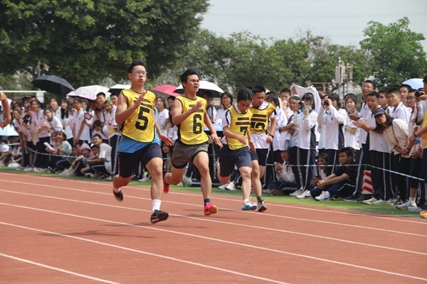開幕式結(jié)束后,100米、400米、1500米、4X100米、跳遠(yuǎn)、實(shí)心球等田徑項(xiàng)目依次開賽。沖刺終點(diǎn),斗志昂揚(yáng)跑道上的運(yùn)動(dòng)員們是最亮麗的風(fēng)景。找準(zhǔn)時(shí)機(jī)拼盡全力,騰飛的身影是學(xué)子青春的獻(xiàn)禮。綠茵場(chǎng)邊,加油聲、助威聲此起彼伏,響聲震天。其中男、女百米飛人大戰(zhàn)最受關(guān)注。