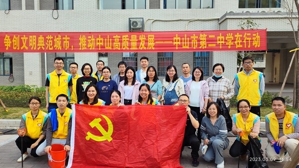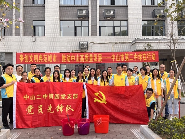 每一位中山市民都是全國文明典范城市創(chuàng)建的參與者、實(shí)踐者、推動者。中山市第二中學(xué)全體黨員以身作則身體力行倡導(dǎo)微公益理念,踐行微文明,沖在創(chuàng)文一線,凝聚共建共治共享強(qiáng)大合力,用實(shí)際行動為中山添上最亮麗的文明底色。