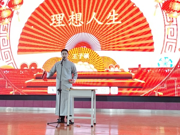 高二8班王子碩同學(xué)上臺方式特別,他一路展示熟練的快板表演上臺,給大家?guī)淼墓?jié)目是單口相聲《理想人生》。他的語言幽默風(fēng)趣,輕松搞笑、內(nèi)容貼近生活吸引觀眾。觀眾席上不時傳來一陣又一陣歡聲笑語,掌聲更是連連不斷。