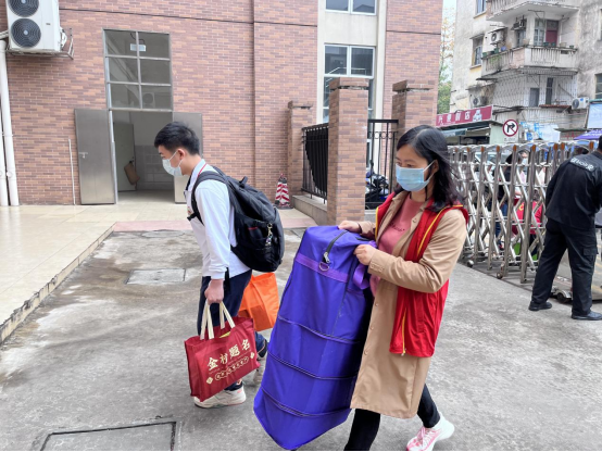 初中部行政、年級主任(副主任)、黨員教師志愿者幫助返校學(xué)生搬運(yùn)行李、疏導(dǎo)交通