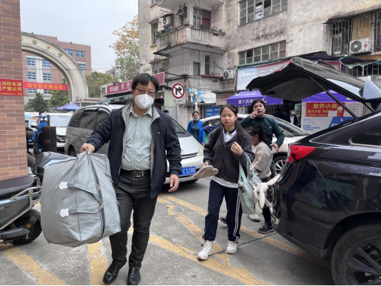 校黨委委員、副校長朱愛東幫助學(xué)生家長搬運(yùn)行李