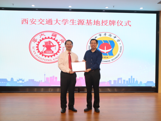 西安交交通大學(xué)授予我?!皟?yōu)質(zhì)生源基地”牌匾