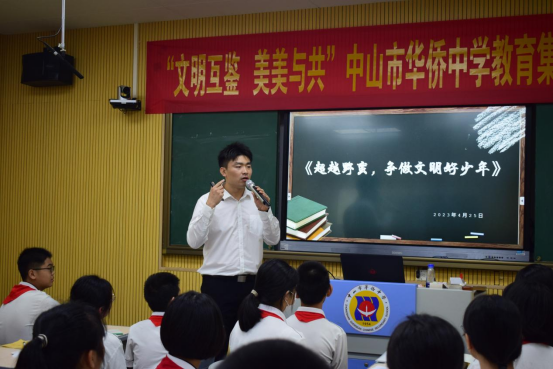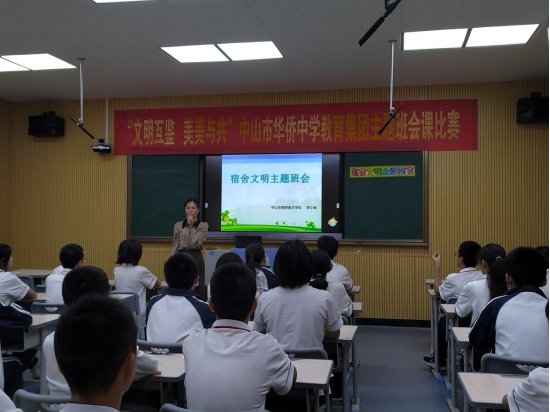 為響應(yīng)習(xí)近平總書記號召,加強中小學(xué)生社會主義核心價值觀培育,4月25日上午,中山市華僑中學(xué)教育集團舉辦“文明互鑒 美美與共”主題班會課比賽,僑中初中部和南僑英才學(xué)校的班主任參加此次比賽。我校德育處副主任林綿、南僑英才德育處主任陳少平等老師擔(dān)任評委。
