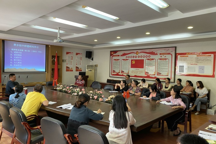 10月23日上午,曹步中學在二樓會議室召開“師德師風”專題學習會議,副校長吳文杰強調(diào)要加強師德師風建設(shè),培養(yǎng)高素質(zhì)教師隊伍,希望老師們牢記《新時代中小學教師職業(yè)行為十項準則》,全面提升教師思想政治素質(zhì)和職業(yè)道德水平。