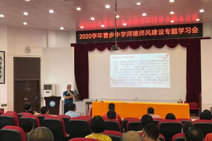 為進(jìn)一步提升學(xué)校教育教學(xué)水平,加強(qiáng)教師隊(duì)伍建設(shè),8月31日,曹步初級(jí)中學(xué)在報(bào)告廳召開了以“做‘四有’好老師,培‘五育’全新人”為主題的2020學(xué)年師德師風(fēng)建設(shè)專題大會(huì),曹步中學(xué)全體教師參加了會(huì)議。