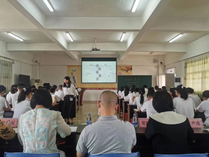 活動伊始,港口中學劉素儀老師為大家呈現(xiàn)了一節(jié)傳統(tǒng)文化教育課例——古詩苑漫步。課堂中,劉素儀老師與學生一起“玩轉”古詩詞,讓學生在快樂中學習傳統(tǒng)文化,汲取到古詩詞的精神力量,收獲了不錯的反響。在隨后的座談中,各位專家也給予劉素儀老師高度肯定。