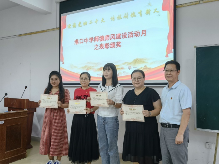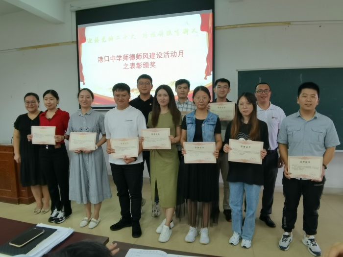 表彰先進(jìn)、樹立典型是為了更好地強(qiáng)化師德師風(fēng)建設(shè),促進(jìn)教育教學(xué)發(fā)展。今后,港口中學(xué)將堅(jiān)持把師德師風(fēng)建設(shè)作為一項(xiàng)長期的重點(diǎn)工作,將以更有力的工作措施,更大的干勁,樹立師德典型,搞好師德培訓(xùn),加強(qiáng)青年教師師德管理,建立健全長效工作機(jī)制,要求每位教師以德立身、以德立學(xué)、以德施教、以德育德,更好地落實(shí)立德樹人的根本任務(wù),辦好人民滿意的教育。