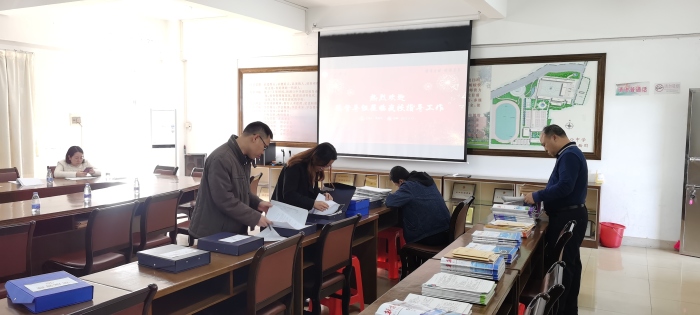 在學(xué)校榮譽(yù)室,港口中學(xué)教務(wù)處主任賈向梅就規(guī)范辦學(xué)、學(xué)校教學(xué)的細(xì)化管理、搭建平臺(tái)助力新教師培養(yǎng)、學(xué)生培養(yǎng)等四個(gè)方面匯報(bào)學(xué)校的教學(xué)工作。隨后,督導(dǎo)組通過實(shí)驗(yàn)場(chǎng)所巡查、查閱資料、師生訪談、問卷調(diào)查等多種形式,全面了解學(xué)校教學(xué)常規(guī)工作的落實(shí)情況。近三年,學(xué)校教師隊(duì)伍注入了新鮮力量,督導(dǎo)組成員認(rèn)真仔細(xì)地翻看新教師的每一本備課教案、每一次作業(yè)批改,并根據(jù)檢查情況做好記錄。反饋會(huì)上,督導(dǎo)組在充分肯定亮點(diǎn)的同時(shí)指出了學(xué)校教育教學(xué)管理中存在的問題和不足,并就如何優(yōu)化教育教學(xué)管理(特別是實(shí)驗(yàn)場(chǎng)所的管理)、提升教學(xué)質(zhì)量等方面提出了指導(dǎo)性意見。