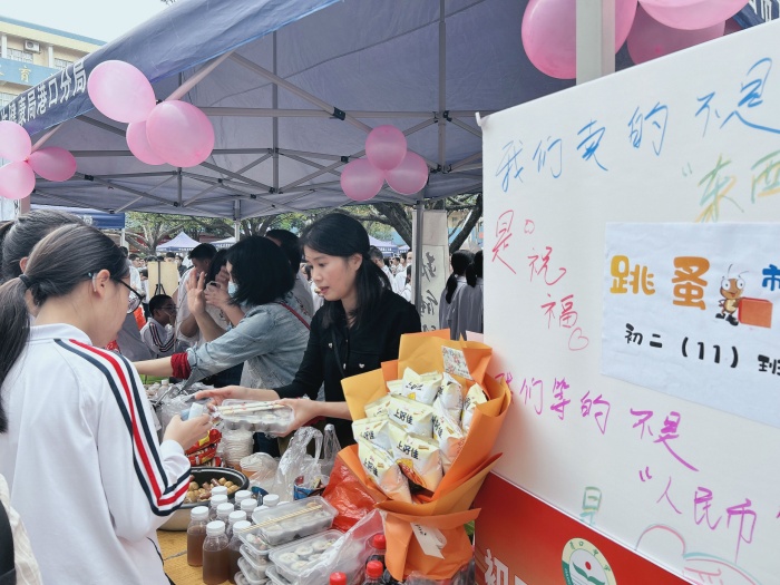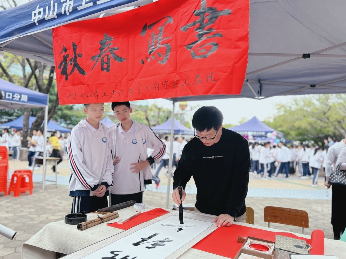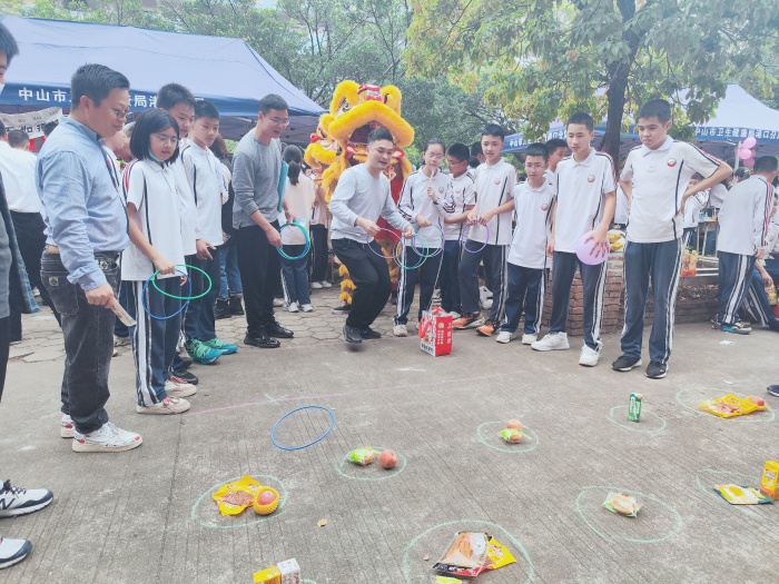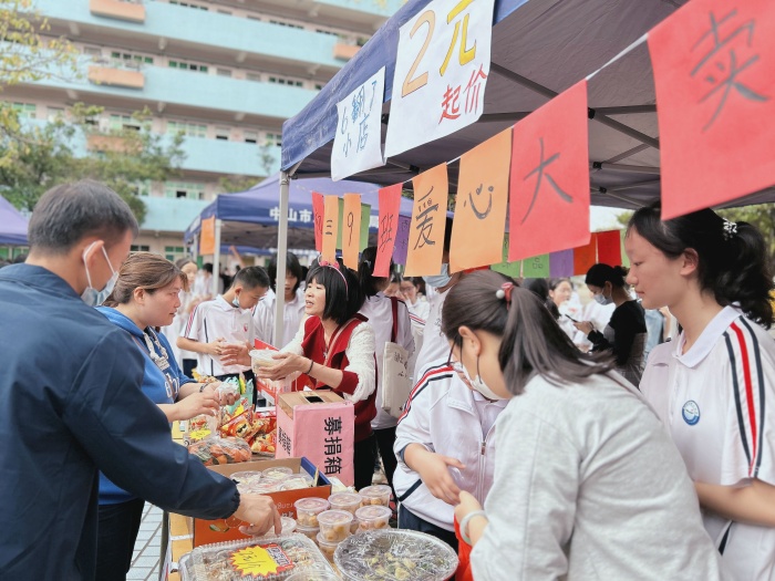 在一陣鑼鼓聲中,2023中山市港口中學(xué)慈善義賣活動(dòng)正式開始。隨后舞獅隊(duì)便開始了舞獅表演,前來觀看的師生、家長都被現(xiàn)場的氣氛所感染著,而舞獅隊(duì)順勢拉開的兩條祝福語:學(xué)業(yè)進(jìn)步,心想事成,更是將現(xiàn)場的氣氛進(jìn)一步燃起。放眼望去,整個(gè)活動(dòng)現(xiàn)場也成了人的海洋,各班級(jí)、各攤位,無不展示著自己的精美物品,“愛心小商店”“解憂雜貨鋪”“心尖上的義賣品”“青春店鋪”“一枝獨(dú)秀”“愛的小屋”等等,全都釋放著無限的精彩,舞獅隊(duì)也不斷地環(huán)繞著整個(gè)現(xiàn)場,敲鑼打鼓、舞姿威武。