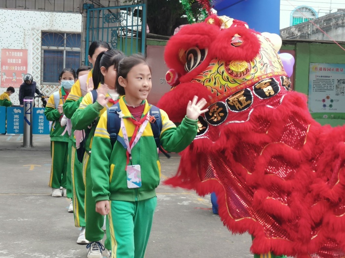 2月6日一大早,學(xué)校領(lǐng)導(dǎo)和老師們,還有禮儀隊(duì)的同學(xué)們,已經(jīng)蓄勢(shì)待發(fā)。早早來到校門口和教學(xué)樓設(shè)置的指引崗位,等待同學(xué)們的到來。學(xué)校的“醒獅隊(duì)”的隊(duì)員們也做好了準(zhǔn)備,他們將會(huì)用傳統(tǒng)的醒獅表演慶祝開學(xué)。