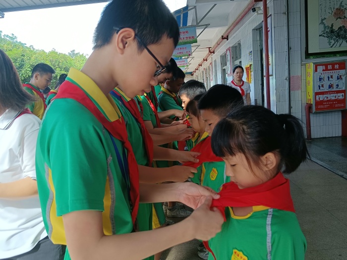 最后,吳曉燕老師激勵(lì)大家:紅領(lǐng)巾是五星紅旗的一角,是無數(shù)中華兒女用鮮血染紅的,紅領(lǐng)巾是少先隊(duì)員的標(biāo)志,她希望少先隊(duì)員在少先隊(duì)組織中歷練,為胸前的紅領(lǐng)巾增添光彩,同時(shí)也希望各中隊(duì)輔導(dǎo)員一如既往,把愛心和熱心獻(xiàn)給孩子,把智慧獻(xiàn)給紅領(lǐng)巾事業(yè),做少先隊(duì)員的親密朋友和指導(dǎo)者。愿隊(duì)員們?cè)谛切腔鹁嫫鞄玫闹敢?,茁壯成長!
