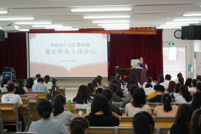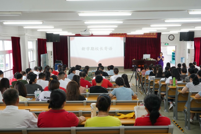 秋風送爽日,揚帆奮進時。為保證新學期工作的順利開展,2021年8月26日上午9點,匯翠學校全體教師齊聚四樓報告廳,召開2021-2022學年第一學期教職工大會。