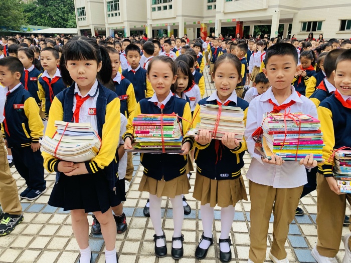 2020年10月19日早上升旗儀式,全體師生攜愛心書籍,歡聚學(xué)校操場,參加愛心捐書儀式。