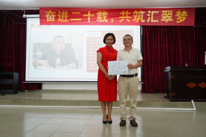 最后潘主任從“幸福踐行:教師的自覺追求”全面闡述了教師的職業(yè)幸福感,他指出幸福感是教師做好教育工作的重要前提,是教師專業(yè)發(fā)展的內(nèi)在動力,是教育追求的最高境界。教師要追求做一個幸福的教師,就要做到心中有夢、身上有情、手中有書、眼中有事、生活有色、工作有心,不斷改變自己,加強理論學習,全心全意做好學生錘煉品格、學習知識、創(chuàng)新思維、奉獻祖國的引路人。講座結(jié)束后,潘主任在學術(shù)交流證書上題詞:“廣納天下英才而教之,故成其大;匯聚四海名師而禮之,故蒼奇翠?!鳖}詞既暗含了廣大匯翠學校的校名,也總結(jié)了匯翠學校建校二十周年來的發(fā)展歷程和初心使命。