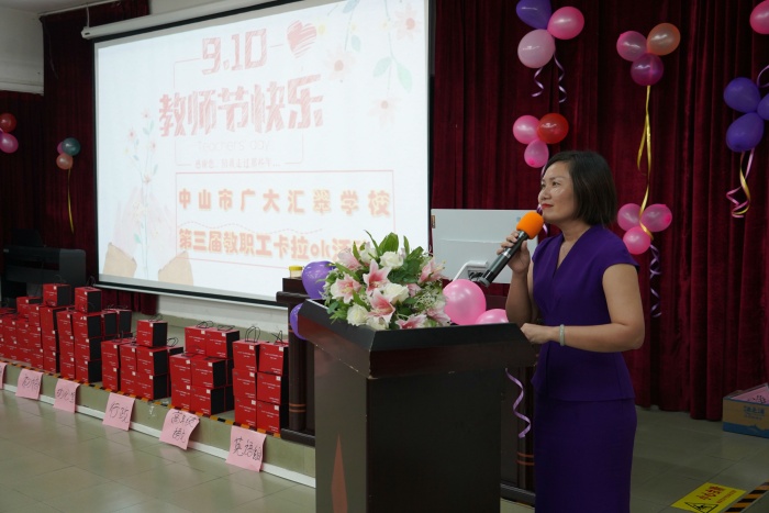 2020年9月10日,建校20周年的匯翠學(xué)校迎來(lái)了第36個(gè)教師節(jié)。為了歡慶自己的節(jié)日,中山市廣大匯翠學(xué)校工會(huì)與德育處別出心裁地將“第三屆教職工卡拉ok活動(dòng)”與慶祝教師節(jié)有機(jī)結(jié)合,融為一體,歌聲與才情的縱情展示,將本次活動(dòng)推向高潮,形成終生難忘的美好記憶。