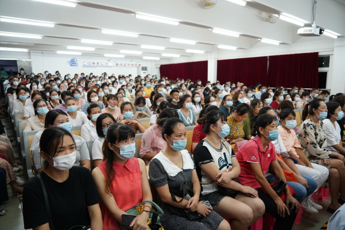 一年級(jí)新生家長(zhǎng)見(jiàn)面于2020年8月28日晚七點(diǎn)整,在匯翠學(xué)校四樓報(bào)告廳正式舉行。當(dāng)晚的會(huì)場(chǎng),莊嚴(yán)又不失激動(dòng),莊重又不失活潑。家長(zhǎng)們時(shí)而專注地用筆細(xì)心記錄,時(shí)而因老師們的有趣表演開(kāi)懷大笑。