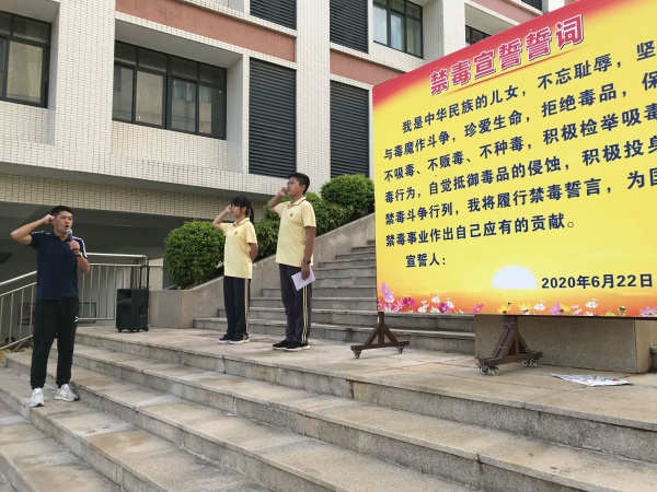 6月26日是國際禁毒日,為響應(yīng)中山市教體局的號召,提高全校師生的禁毒意識,6月22日上午,良都中學(xué)舉行了“6·26”國際禁毒日宣誓活動,表達(dá)了全校師生珍愛生命、拒絕毒品的信心和決心。