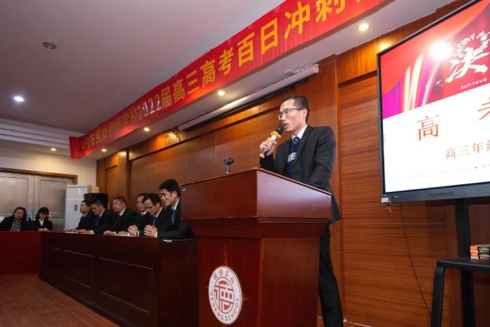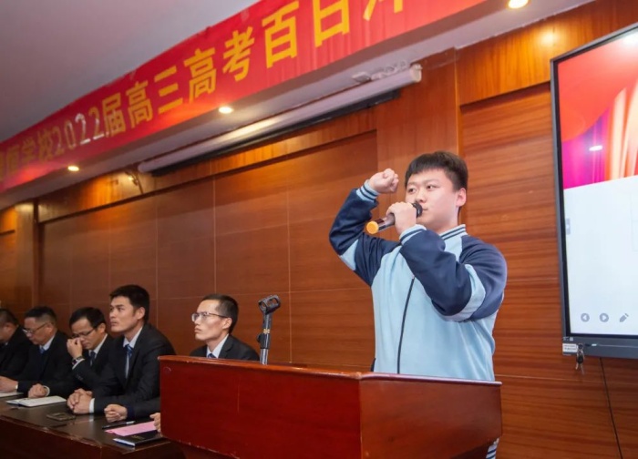 高三6班朱瑩瑩作為學生代表發(fā)言,她用激情豪壯的言語號召全體高三學子,要有鐵一樣的意志,鋼一樣的精神,駱駝一樣的執(zhí)著,堅持不懈,戰(zhàn)斗不止,清醒一百天,振奮一百天,實干一百天,拼搏一百天,無悔一百天。