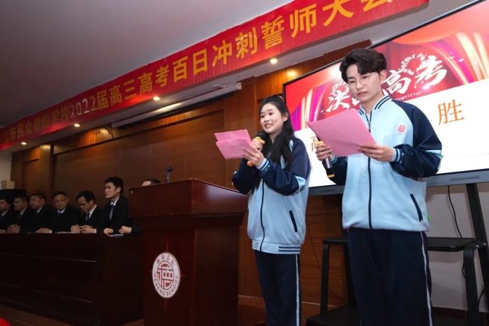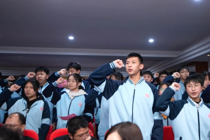 作為即將出征的勇士,全體高三學子在聶嘉鑫同學的帶領下,拋卻了猶豫和彷徨,抱著必勝的信念和希望,振臂高呼百日誓詞,同學們斗志昂揚,士氣高漲,帶著“背水一戰(zhàn)”的決心和勇氣,鼓舞著現(xiàn)場的每一個人,擲地有聲的誓言響徹全場。