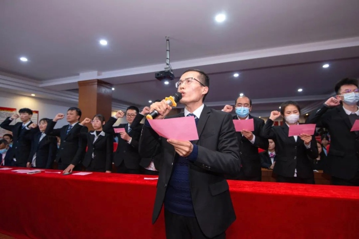 全體高三教師在彭沖老師的帶領下,莊嚴宣誓,作為高三學子的戰(zhàn)友,會在最后一百天和同學們并肩作戰(zhàn),努力拼搏,飽含真情和使命的誓言,宣示著老師們的雄心壯志,相信在他們的指導下,六月的夏天一定會碩果飄香。